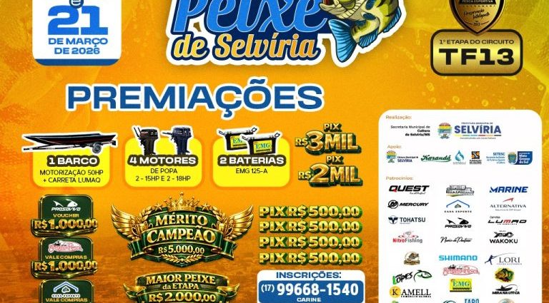 As inscrições para a etapa de Selvíria do renomado torneio de pesca ‘Tucuna Free’ já estão disponíveis. O evento, que faz parte da quinta edição da ‘Festa do Peixe’, ocorrerá nos dias 20 e 21 de março, prometendo atrair entusiastas da pesca e visitantes da região. Organização e Apoio AContinuar: